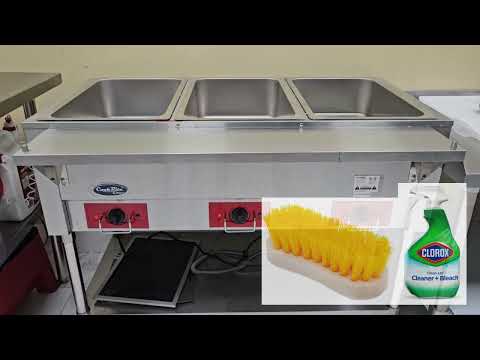 Stainless steel die-stamped opening, 12" x 20", rising lip around well helps keep well clean and makes food pans easy to load and unload. Indicator light of each well shows both power on and element heating. Mechanical guards on all switches for safety and reliability.